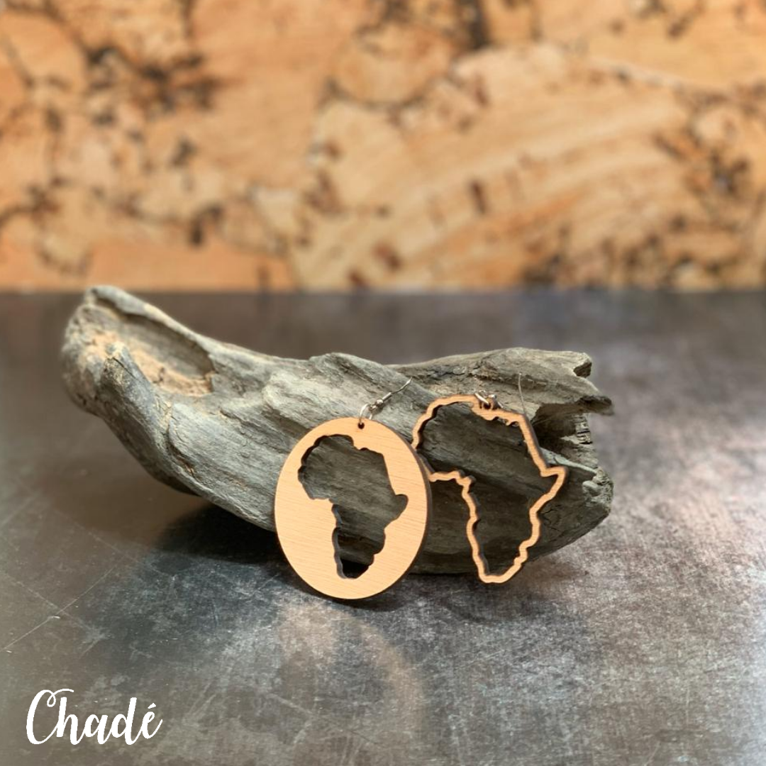 Africa shaped, wooden earrings.
